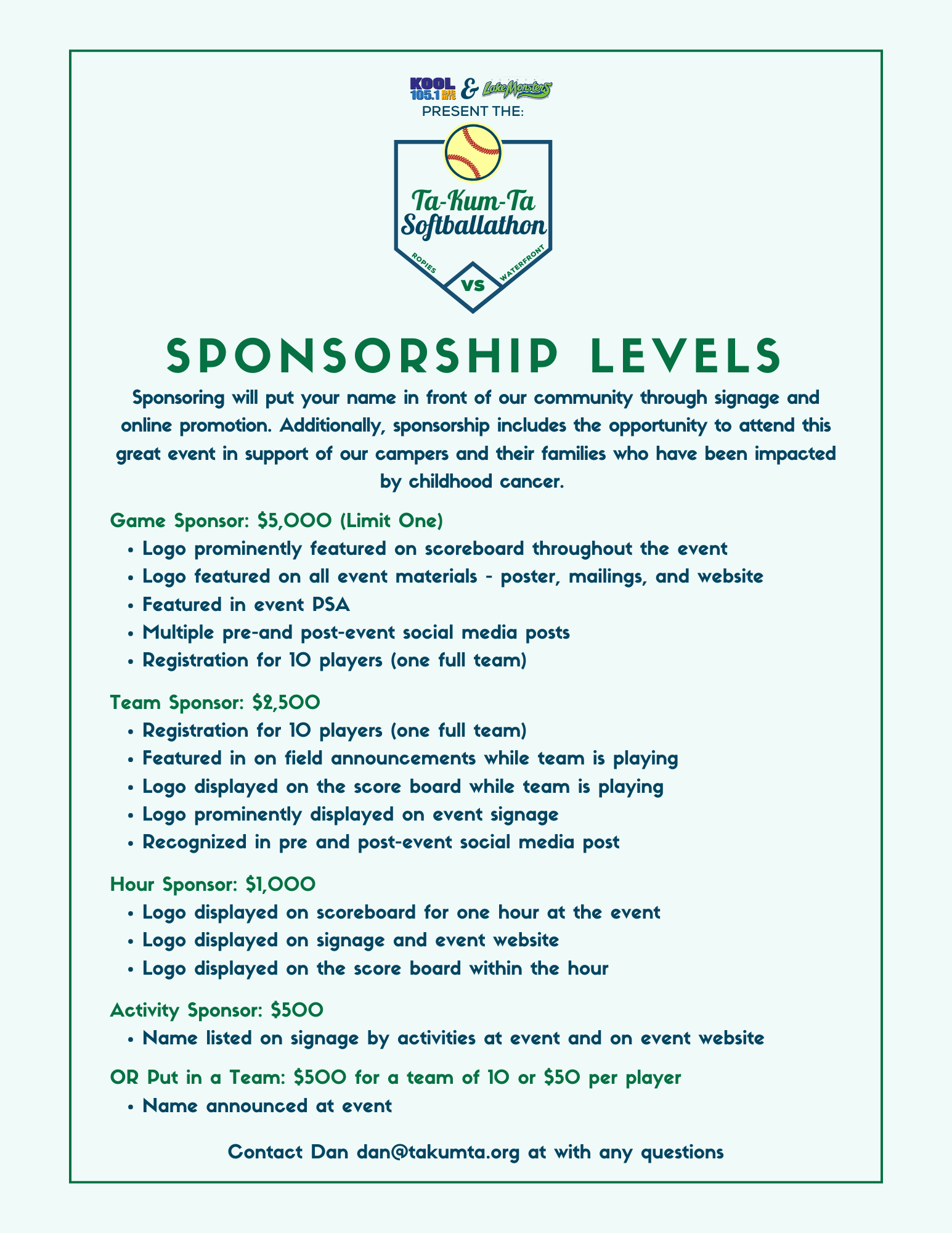 Once you’ve registered to play, you will receive a custom team page to share with friends, family, and colleagues to help fundraise your team registration fee. $50 per player, minimum of 10 people on each team.